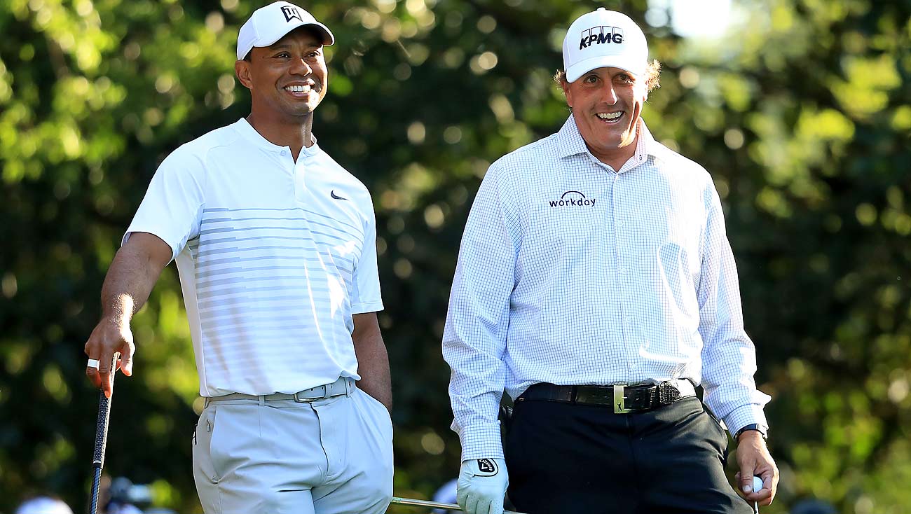 Get out your Golden Age of Golf time machine, people. Set the dial to April 3, 2018. Now set the latitude and coordinates for 2604 Washington Road, Augusta, Ga. Zoom in to the second-floor porch of the Augusta National clubhouse, where two green-jackets gents of a certain age are watching the unlikely sight of Phil Mickelson and Tiger Woods concluding a joint practice round.