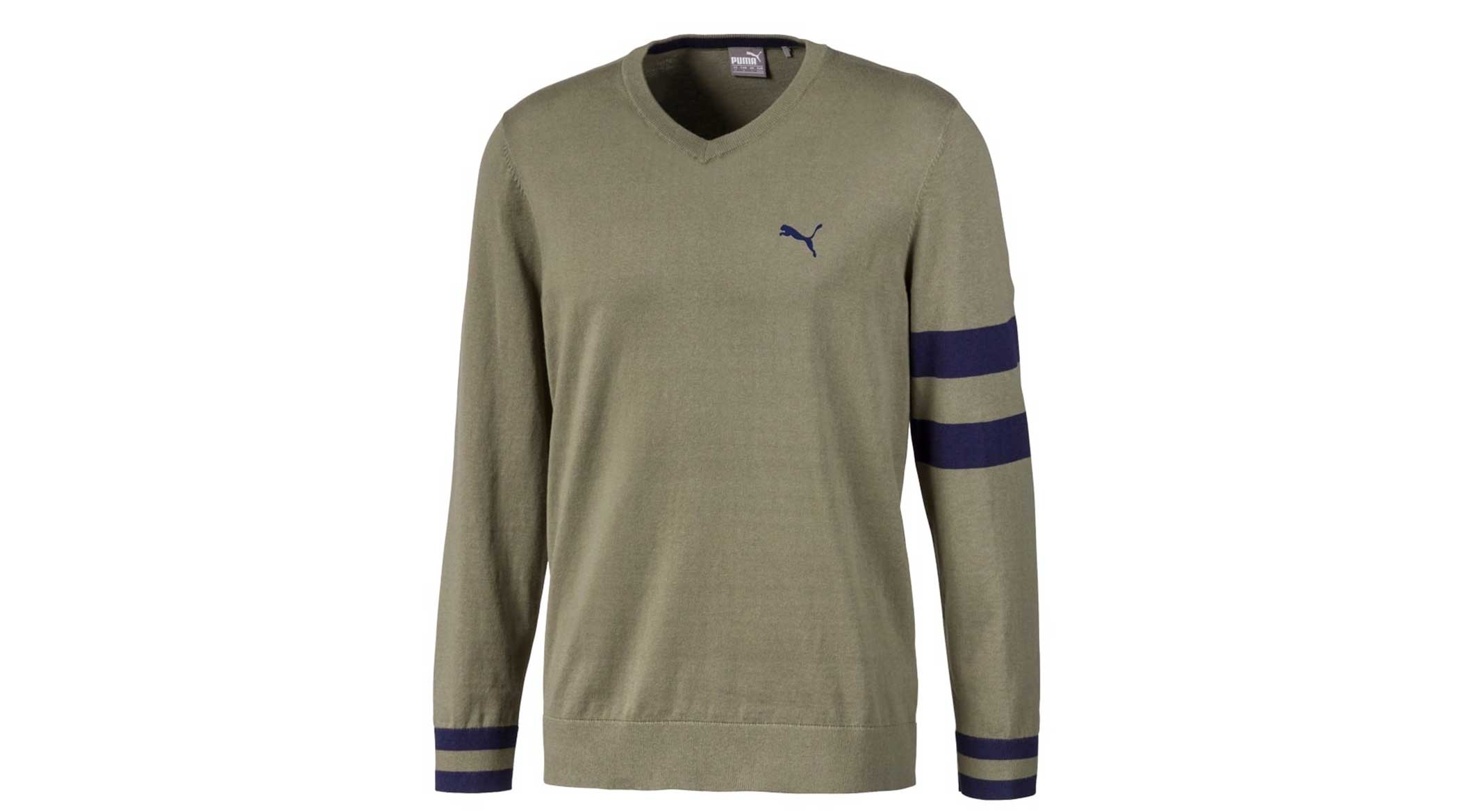 I love a good cotton-cashmere blend for its soft-hand feel and performance-ready qualities. This varsity-inspired v-neck is the perfect layering piece to top off your spring golf look.