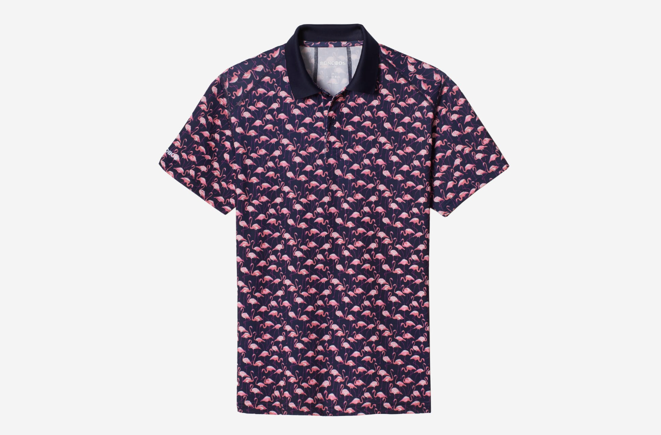 If you’re down to add a little eccentricity to your golf look, go for this flamingo printed polo. I like that you can’t really tell that its flamingos at first glance because the pattern is so intertwined.