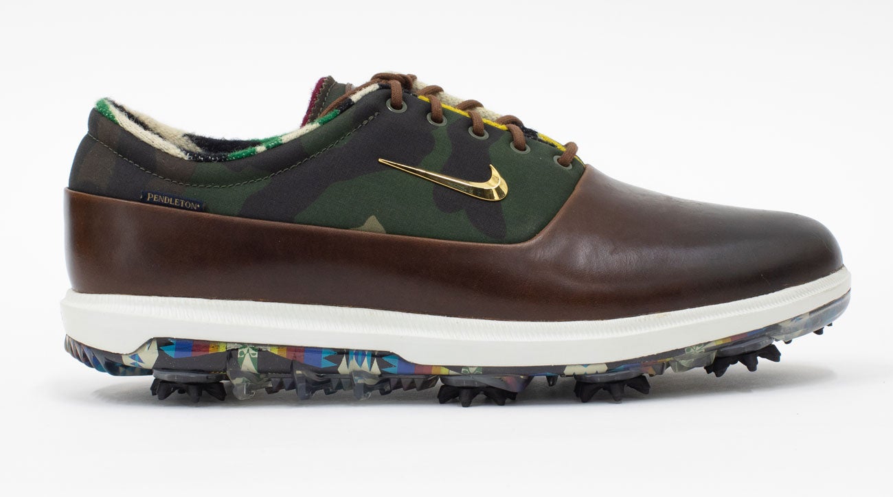 The resulting shoe has a slick brown leather base, fused with a camouflage upper for a classy take on one of Nike’s most popular performance golf shoes.