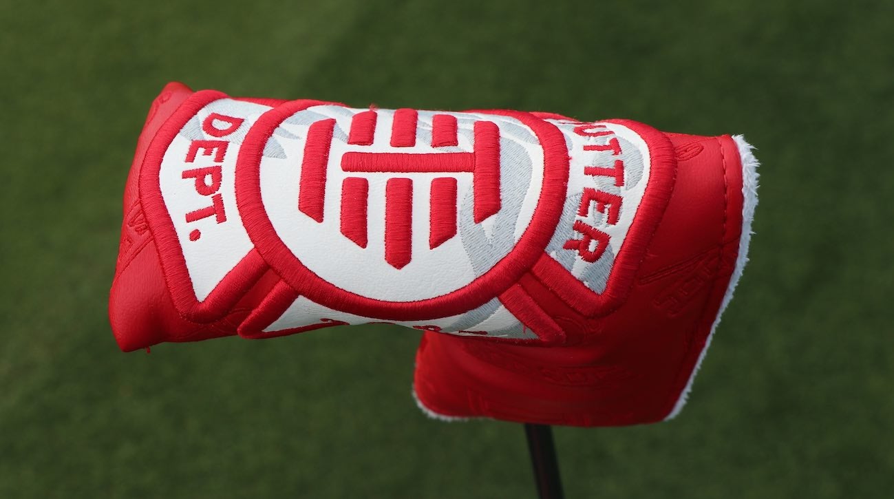 Smith’s PXG Lucky “D” is a mid-mallet putter. This right here is a Bettinardi Tour Department headcover made for a blade putter. It’s not impossible to fit a mid-mallet in a blade cover, but let’s just say it’s a snug fit. It’s a curious combination. Smith must really like this headcover.