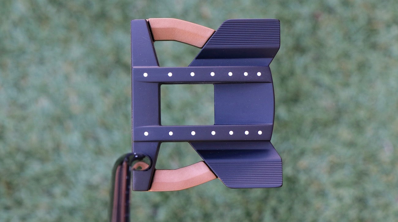 From Ping: “To elevate MOI over the Sigma 2 Fetch, which has steel bordering the center cutout, designers used aluminum, then steel in the heel-toe ballasting for increasing forgiveness. The color contrasting helps golfers focus on the alignment lines, causing the holed-out section to fade and not be the primary focus.”
