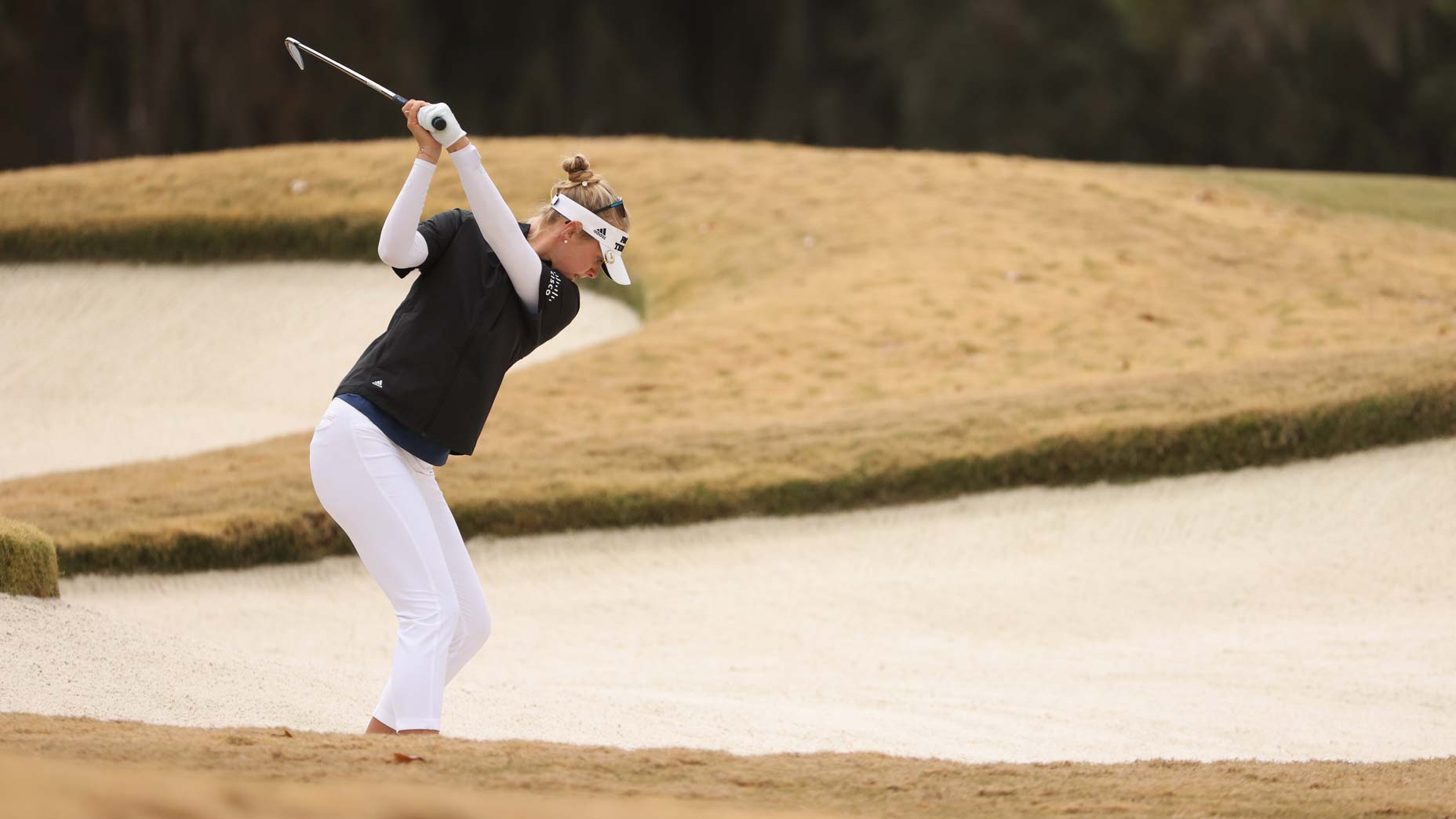 Need to make something happen on your last hole of the day? Send it at the green! For crisp contact, choke up an inch, keep your lower body stable and make clean contact. Remember — you don’t need to “lift” the ball out of the bunker; the club’s loft will do that on its own. All you need to do is think about your upcoming birdie putt.
