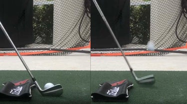 “Typically players who come in too steep will start down with their shoulders,” Sprecher says. “Go to the top of your backswing, feel the shift with your lower body and watch the club drop down underneath or between the two rods. Do that two times slowly and you can swing through, just to feel what it’s like.”
