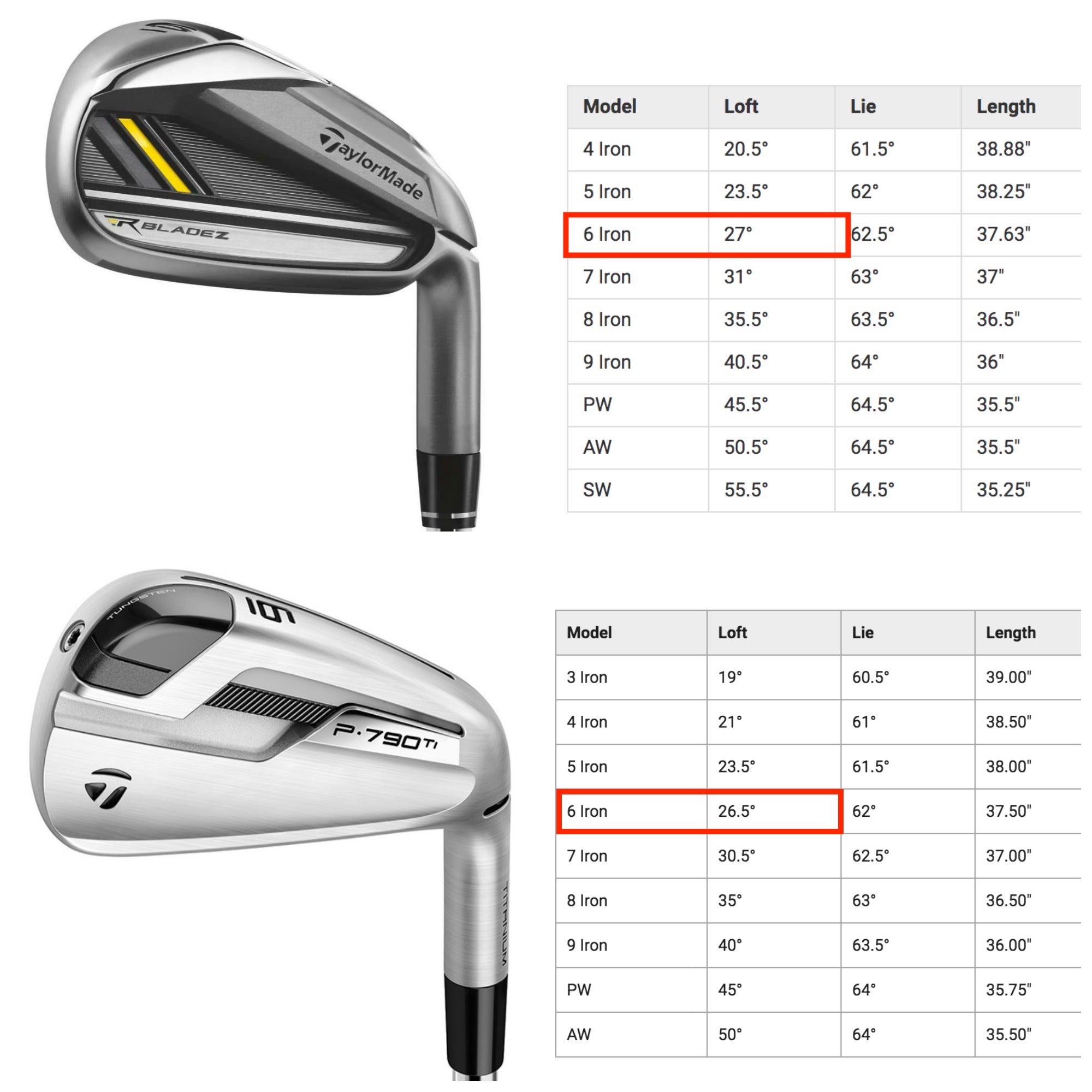 There’s all sorts of things that differentiate the two irons, but one of the more subtle difference is the sheer loft of the two irons. As you can see below: If you compare the loft of the two six-irons, you’ll see the P790 TI irons have half a degree less of loft.