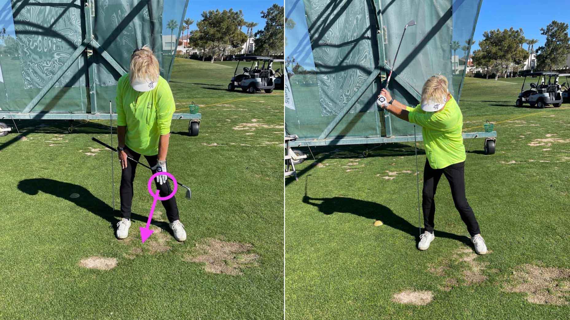 Gary Woodland and Lydia Ko are both rear post golfers who like to shift to their trail leg on the backswing, then use lots of lateral force on the downswing to get back to their left side and into position at impact. This will result in the left knee moving more towards the right on the backswing. Glide is the main power source with this pivot style.