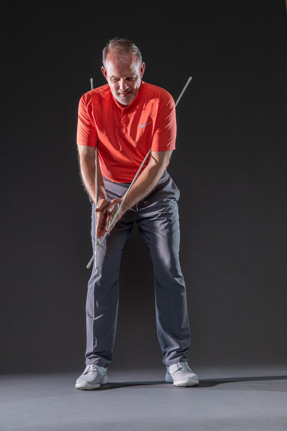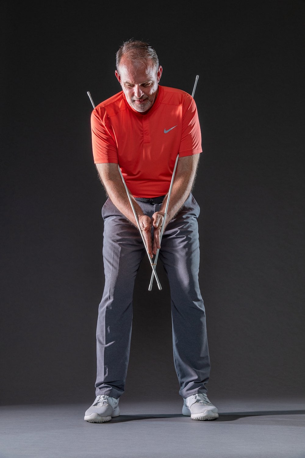 - Bend forward into your putting posture, then slide your hands up and down the sticks until you reach your normal arm hang and elbow flex.
