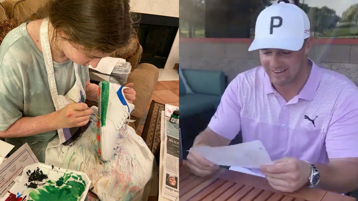 And so, ahead of the Shriners Hospital for Children Open, Katharine decided to paint a pair of Puma shoes for Bryson DeChambeau, who is making his first start following his U.S. Open victory. The shoes were adorned with green and blue, and even featured a few math equations painted on them.