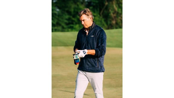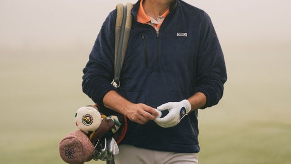 The Outfit: Why wouldn’t you bring a fabric you wear often off the course, like fleece, onto the course? Puma Golf’s entire Excellent Golf Wear Collection does a great job of merging street wear and athletic wear with golf wear, and it includes this 1/4-zip Sherpa ($120) that offers all the stretch your golf game needs. We layered it over a fun Bonobos polo ($68) for a necessary pop of color, then paired it with beige Adidas Adicross Warp Knit pants ($110) and a North Coast Golf Co. nautical glove ($26).