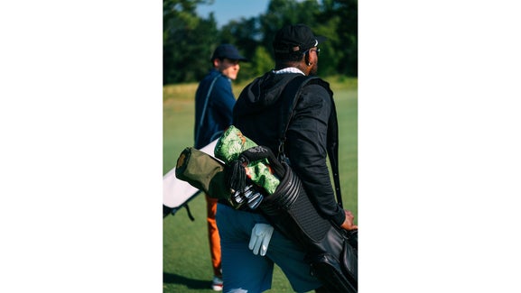 The Outfit: Wearing a hoodie doesn’t always mean attracting unwanted attention. First of all, they’ve become far more acceptable as on-course attire (thanks to guys like Justin Thomas, who wears them while contending on Tour), and if you opt for a black-on-black piece like the Greyson Gotham hoodie ($125) Delanie is wearing here, you’re making a subtle and stylish statement. We layered a Stitch Sid Stripe polo ($98) underneath and tucked the collar under the hoodie, then rounded out the outfit with a black Imperial Emergency Nine Original rope hat ($30), Revo shades ($229) and slate-gray Johnnie-O Wyatt shorts ($89).