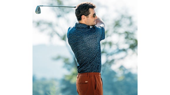 The Takeaway: If you’re not entirely ready to adopt a street-inspired look — start small. Pair a classic golf staple, such as a patterned polo layered underneath a solid-colored quarter-zip, with a surprising item, such as a bold-colored trouser or a surprising shoe.