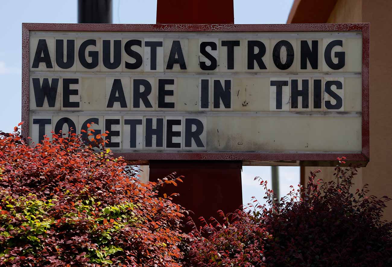 TBonz Steakhouse is typically a hub of Masters Week activity. “Augusta Strong,” the sign reads instead. “We’re in this together.”