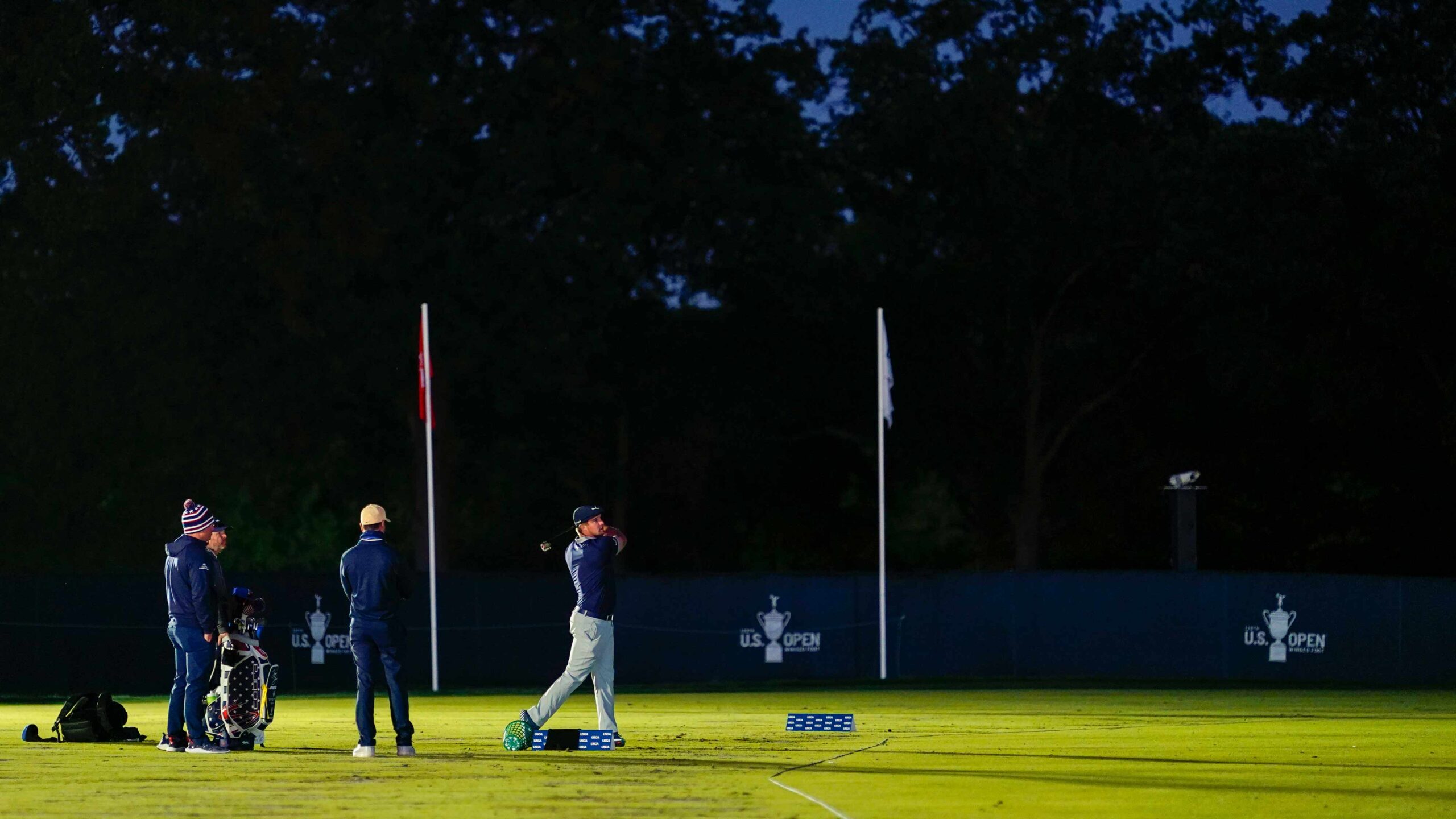 He’s on the range, here at Winged Foot. The sun has set, the moon has risen, the North Star is doing a little dance with her neighbors. And beneath it all, in all his distinctiveness, is Bryson DeChambeau, in second place in this 120th U.S. Open, hitting one 3-wood and one driver after another.