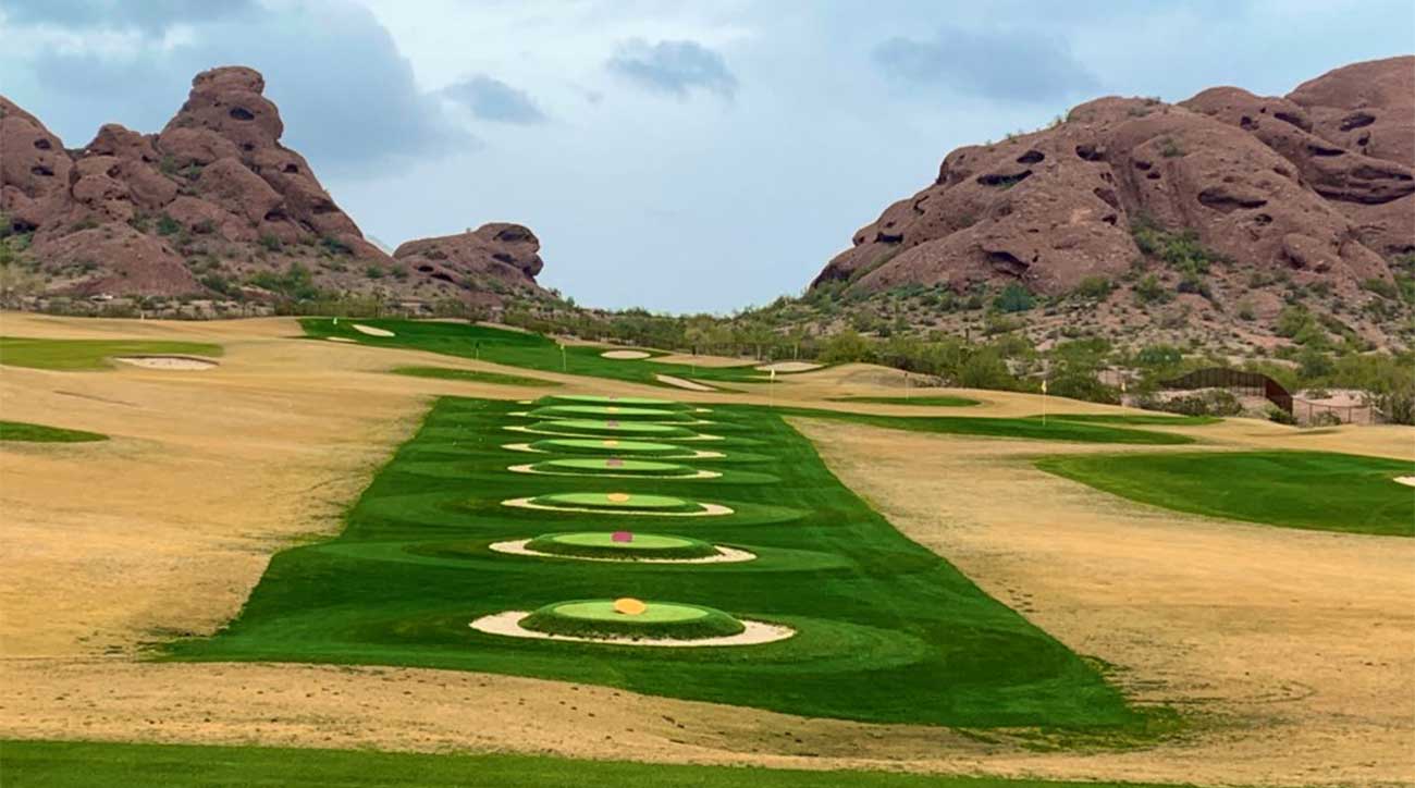Aligned down the center of the range and framed by the Papago Buttes sits eight targets designed by Mickelson to work on wedge control, with targets ranging from 30 to 145 yards.