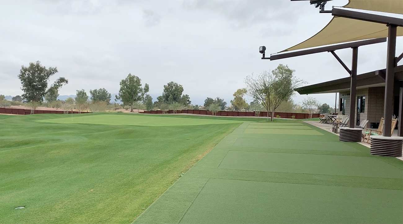 There’s 5,600 square feet of teeing area made out of synthetic turf (with three types of hitting surfaces) and a six-acre range with 21 targets and seven fairway bunkers. A four-acre short-game area has five practice greens (30,000 square feet) and four bunkers, and a three-acre fairway was designed to simulate any sort of shot shape players need to replicate. Three synthetic turf practice putting pads — all 15 feet x 15 feet — are sprinkled about and have slopes of 2%, 3% and 4%. On the far end of the property, closest to Papago’s routing, is a 10,000-square-foot practice putting green that’s tiered and has specific areas with 1%, 2%, 3% and 4% slopes.