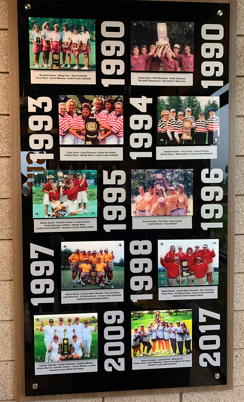 No small detail was overlooked in the creation of the facility. Players are greeted by a lobby oozing with Sun Devil pride, which includes team photos, NCAA title trophies and more accolades. The interior boasts separate men’s and women’s locker rooms, offices, a fitness center, kitchen, lounge area, study room, indoor hitting bars and golf lab.