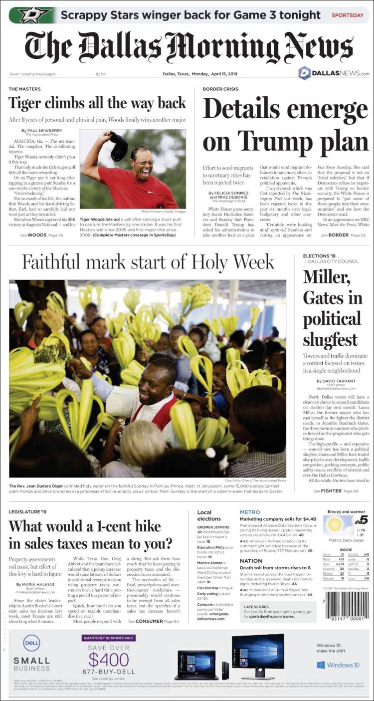 On today's #frontpage: Tiger Woods completes sports comeback for ages with fifth Masters victory; Roberts, Kavanaugh form bond – and boost the liberals on the high court pic.twitter.com/UBE8PlpdkQ