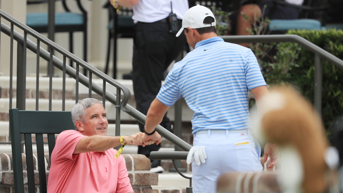 Professional athletes live in a comfort zone and often aren’t accustomed to following social protocols or mandates. Players may think they’re doing enough but many aren’t — the fist-bumping and handling of other players’ clubs and socializing at bars and restaurants around Tour stops needs to be curtailed. On Wednesday afternoon, Charley Hoffman, who is the chairman of the Players Advisory Council, told Golf Channel that perhaps the Tour’s successful first week back — no players or caddies tested positive at Colonial — fueled a “false sense of security.”