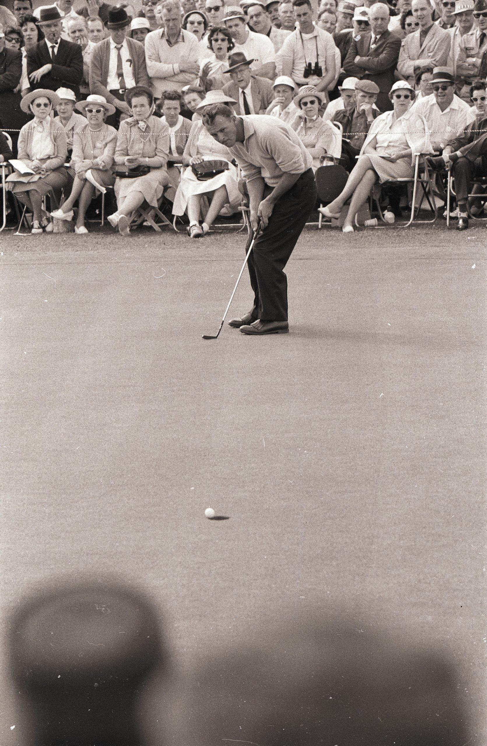 Arnold Palmer putts during the opening day of the 1960 Masters.