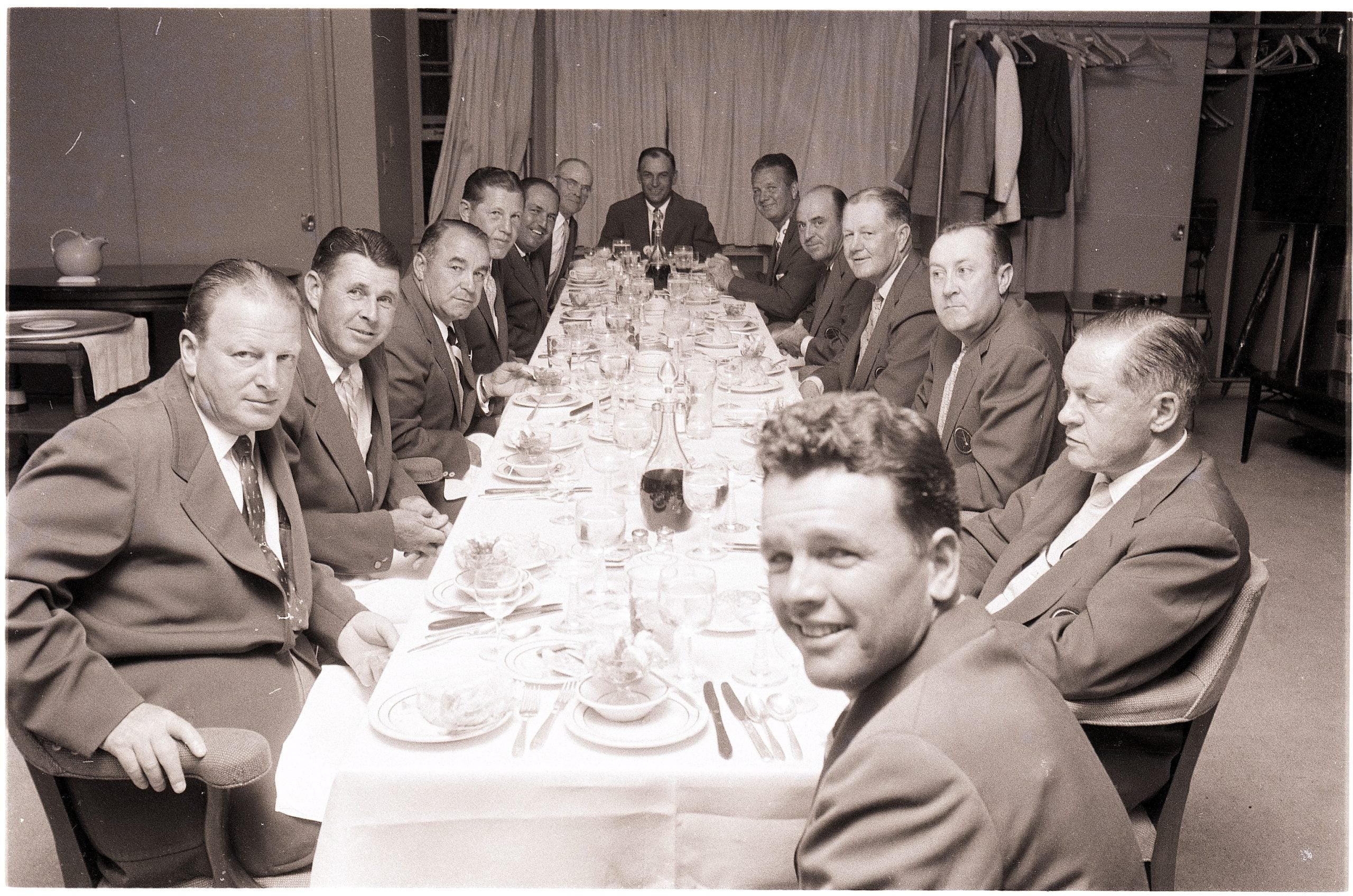 The 1957 Champions Dinner, with Augusta co-founder Bobby Jones.