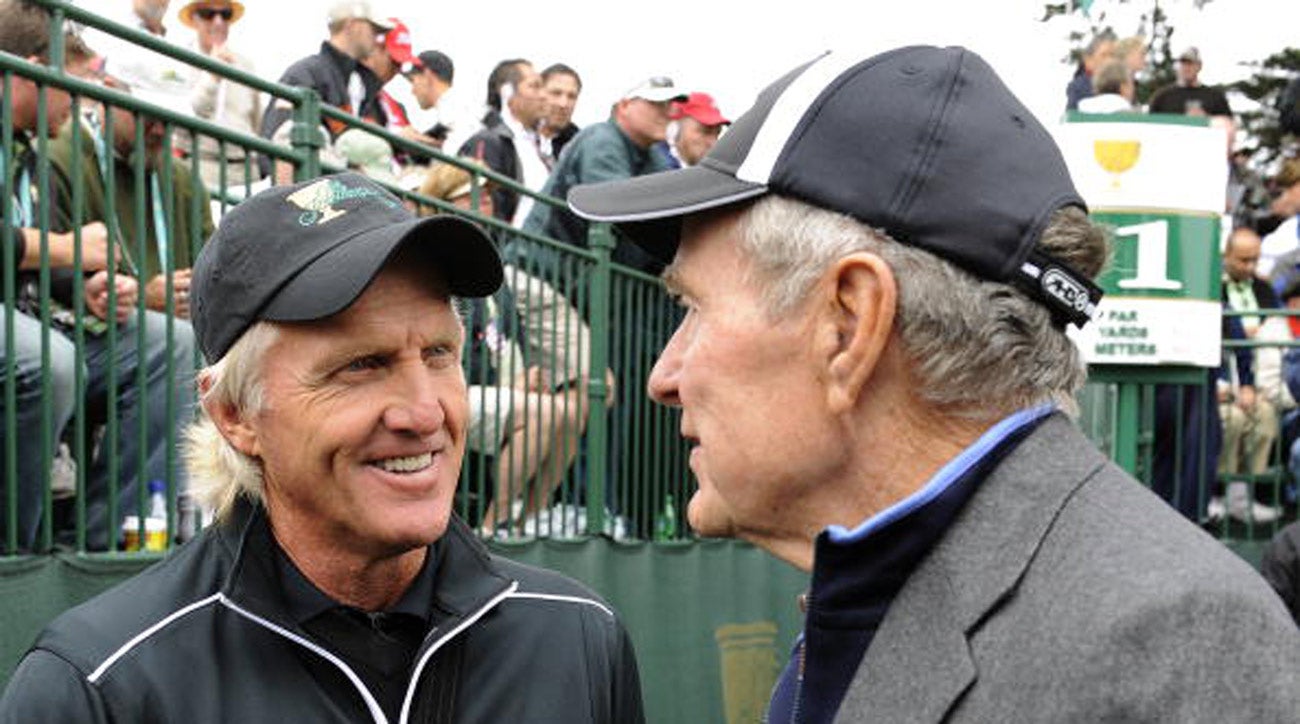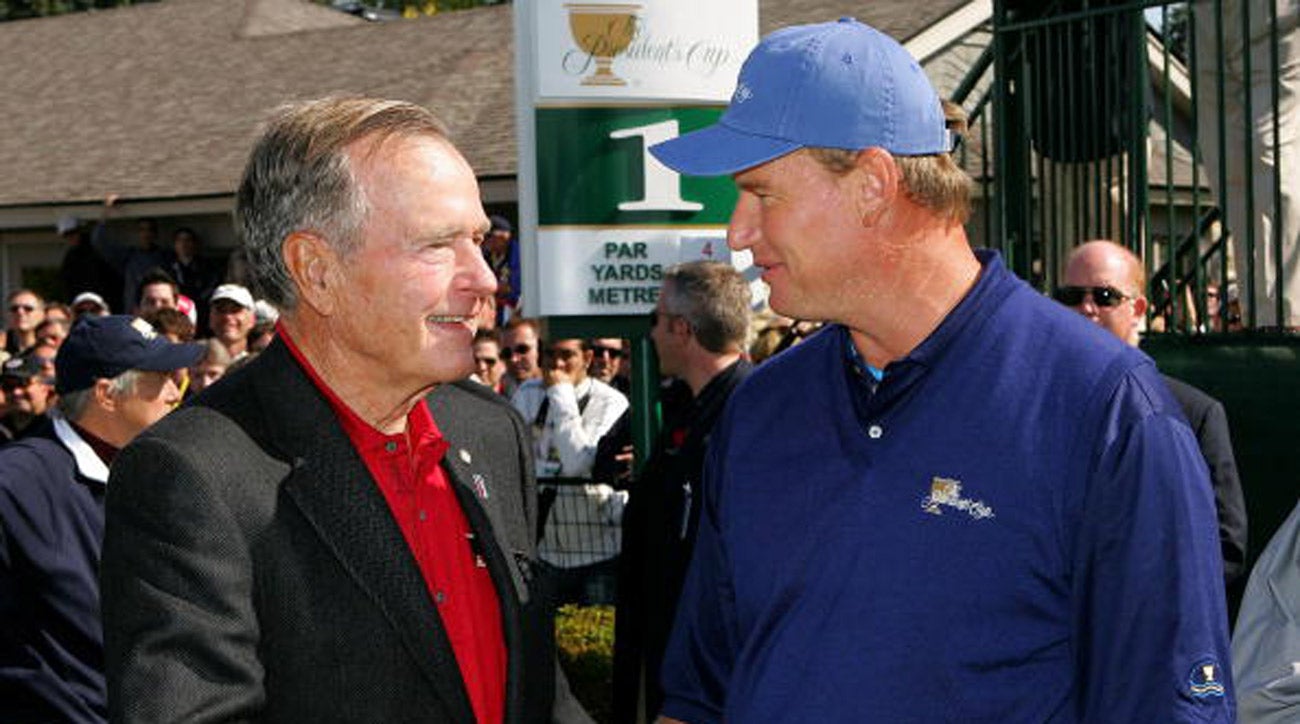 Bush 41 chatting it up with Greg Norman at the 2009 Presidents Cup.