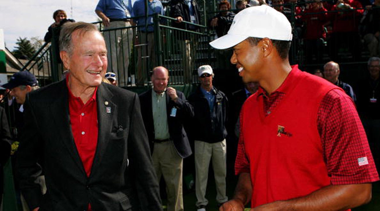 Bush 41 and Tiger Woods both rocking red together at the 2007 Presidents Cup.