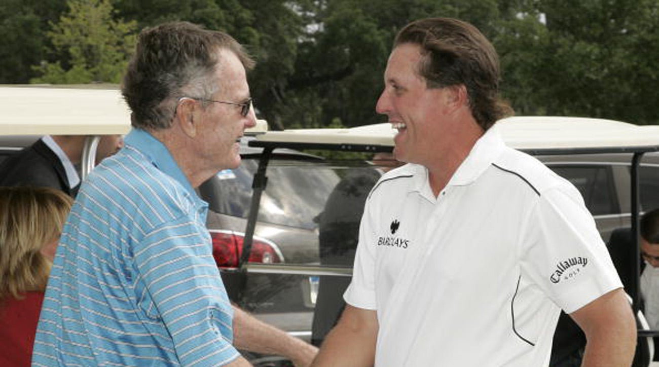 Bush and Phil Mickelson chat at the 2008 Players Championship.