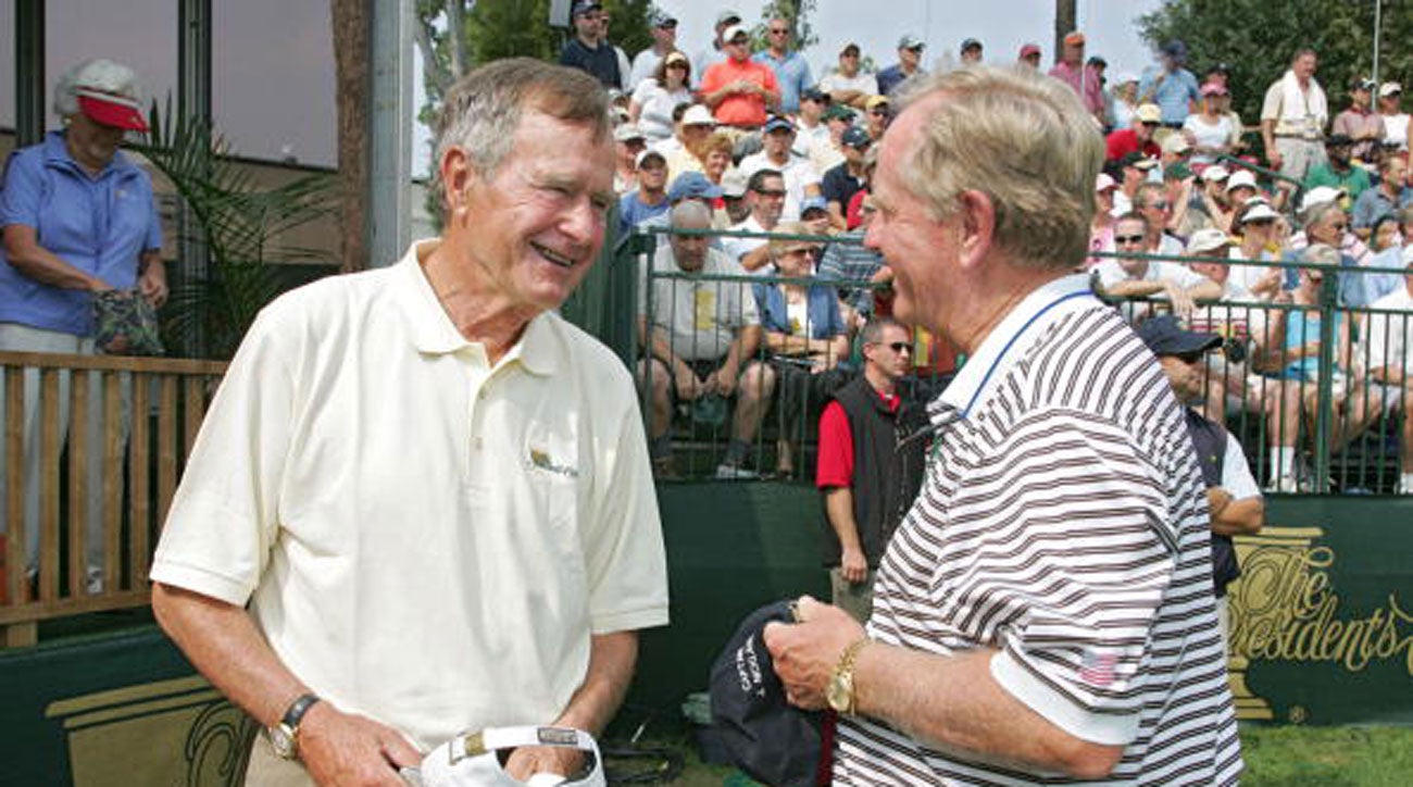 Bush 41 chatting it up with Jack Nicklaus at the Presidents Cup in 2005