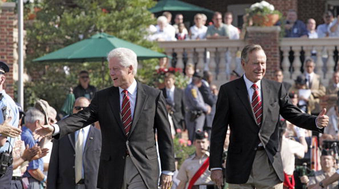 George HW Bush struck up a great friendship with Bill Clinton after losing to him in the 1992 election. Their shared passion for golf is seen here at the 2005 Presidents Cup.