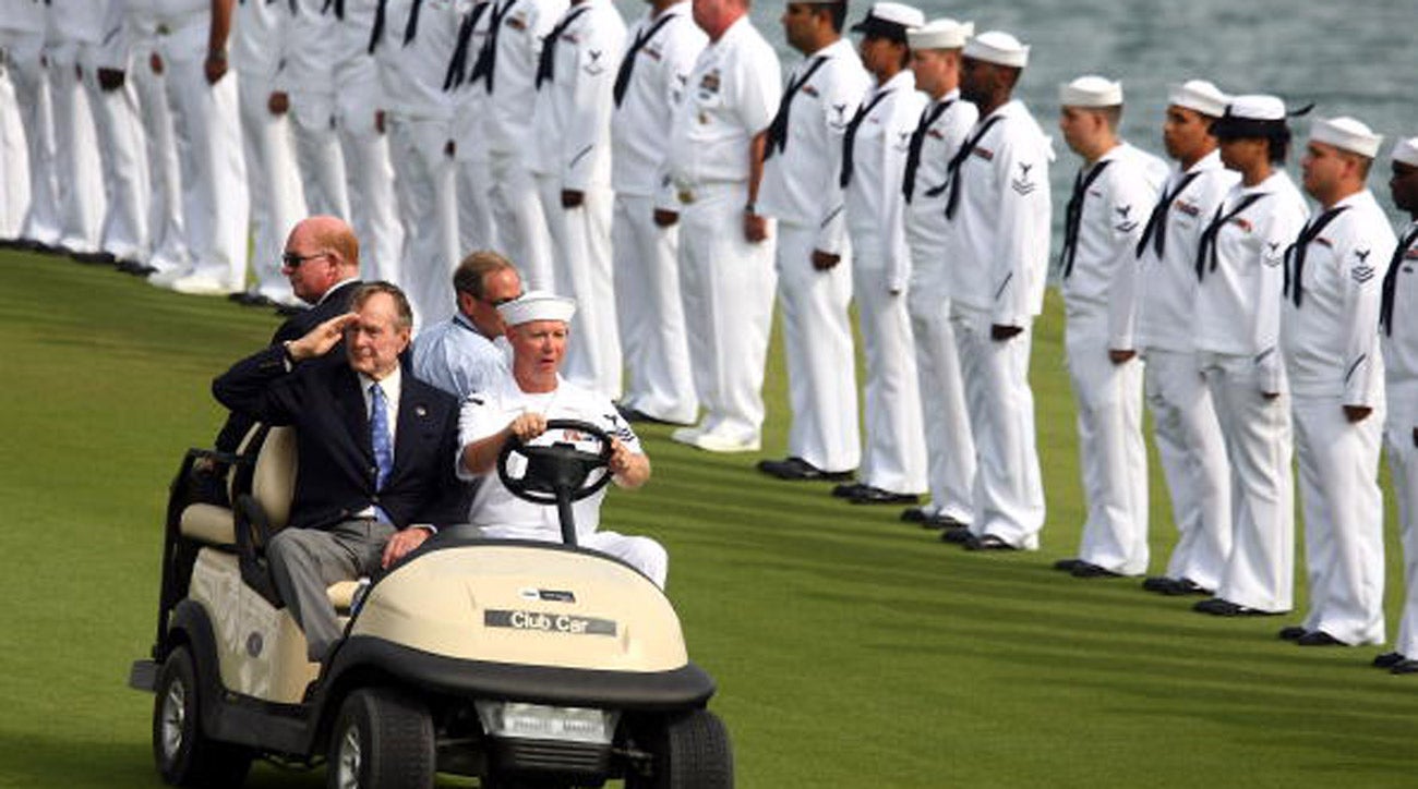 Bush 41 salutes his fellow members of the Navy at the 2009 Players Championship.