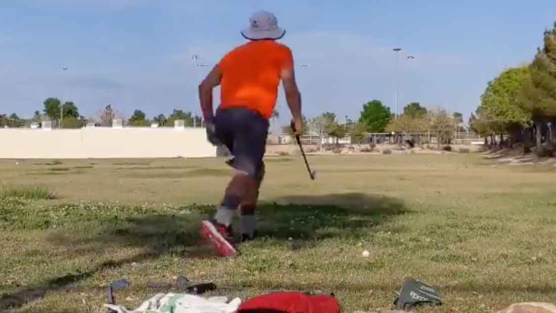 Eddie Olson who lost in playoff today, had only been able to practice at a park leading up to event. He would place his umbrella at 100 yds to hit at. And while he was filming his swing….someone jumped fence and tried to steal his umbrella and he had to run them down..🤣🤣🤣 pic.twitter.com/1N57Lz8tRu