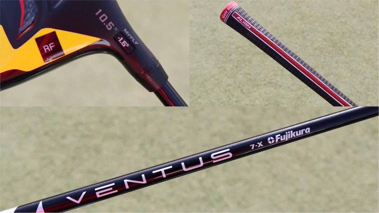 His “new” driver is equipped with a Fujikura Ventus Black 7X shaft, and like all of his clubs, it has a Golf Pride Align reminder grip.