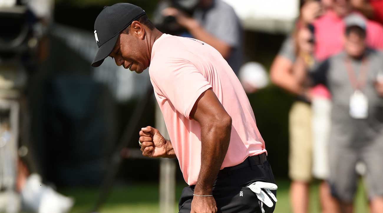 Woods, playing in his first Tour Championship since 2013, three-putted for bogey on the opening hole but came back with birdies on 5 and 6. He added two more birdies on 12 and 14 before stepping to the 18th tee trailing Fowler by two. A driver and fairway wood to the green later left a 28-footer for eagle, which he nailed.