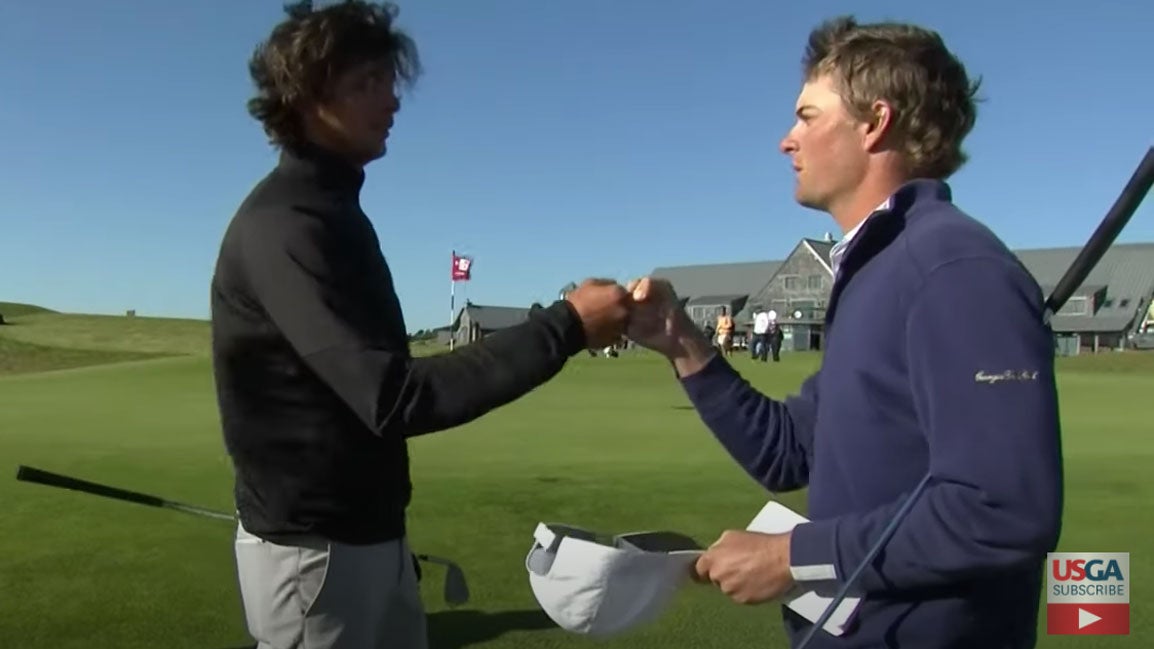 “I was reading my putt over there and I saw the caddie go down and put his hand down,” he said. “I didn’t see it touch the sand or whatnot, but my dad saw it and I guess a couple other people saw it. But I just feel so bad for him. I mean, that was one of the best matches I’ve ever played, just back and forth and he’s a great kid and he played great, we both played great. And for that to happen, I feel really bad for him.