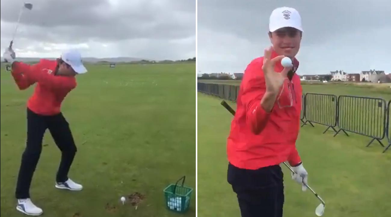On Friday, the day before the competition begins, Hammer went out to the range at Royal Liverpool to film an experiment. He wanted to see if he the wind was bad enough to blow a normal forward shot backward.