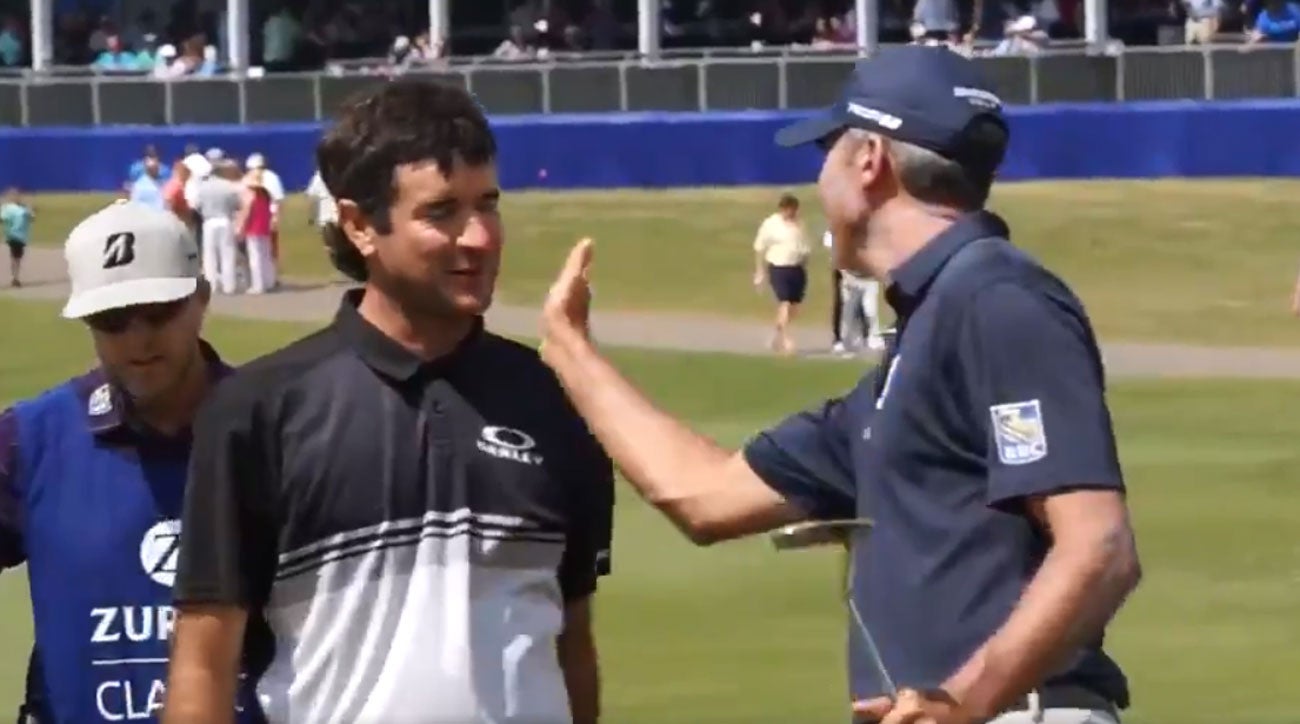 You read that right. For some reason, Bubba and Kooch decided the best way to congratulate each other after a birdie was a light slap on the cheek and a finger pointed in their face. So if Bubba makes a birdie, Bubba gets slapped. If Kuchar drops a bird, Bubba gets to do the honors.