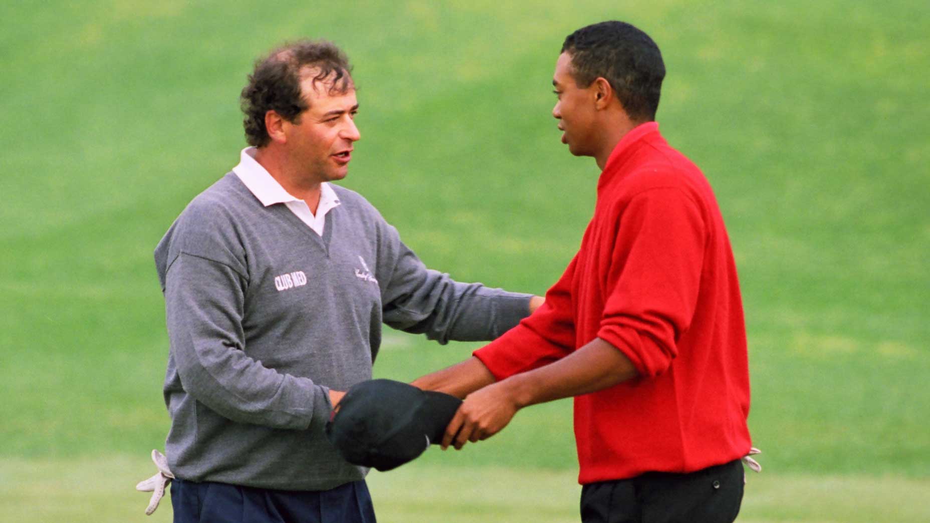 He hooked his first tee shot into the trees. He bogeyed four of his first nine holes. He limped to the 10th at Augusta National with a 40. And on April 10, 1997, in his first round at the Masters as a professional, Tiger Woods still bettered his playing partner, defending champion Nick Faldo, by a stroke on the front nine. Of course, you likely know what happened three days and 63 holes later. A quarter century ago, Woods won the Masters Tournament by 12 strokes — and the margin remains the standard for domination over a Masters field. You also likely know he’s won the event four more times. But those who stood next to Woods tee-to-green know the story best. To commemorate the 25th anniversary of Woods’ first green-jacket win, we’ve collected stories from the players paired with him in the final rounds of his five victories. So, “Fore, please! Tony Finau, Francesco Molinari, Chris DiMarco, Retief Goosen, Phil Mickelson and Constantino Rocca, now driving.”