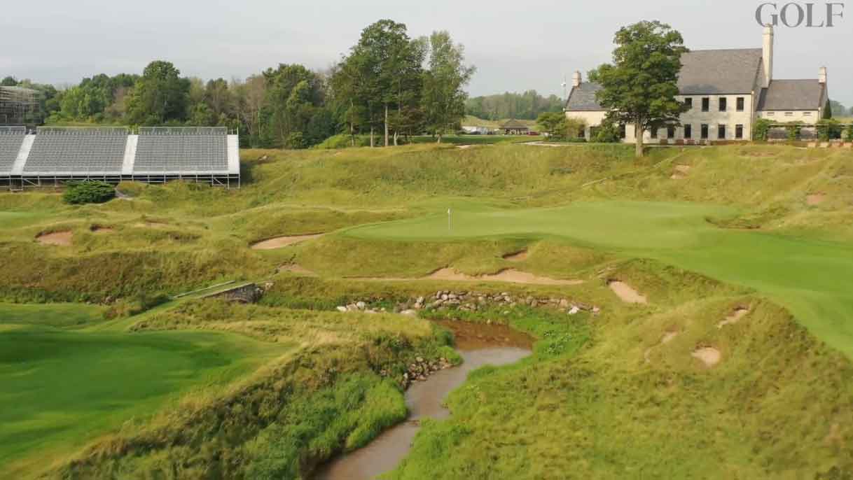 Sand dunes to the left. Deep bunkers and Lake Michigan to the right. A hanging lie from a tilted fairway toward an infinity green that drops off to the water. Aside from that, it’s a pretty simple shot. Fear factor: 7 out of 10