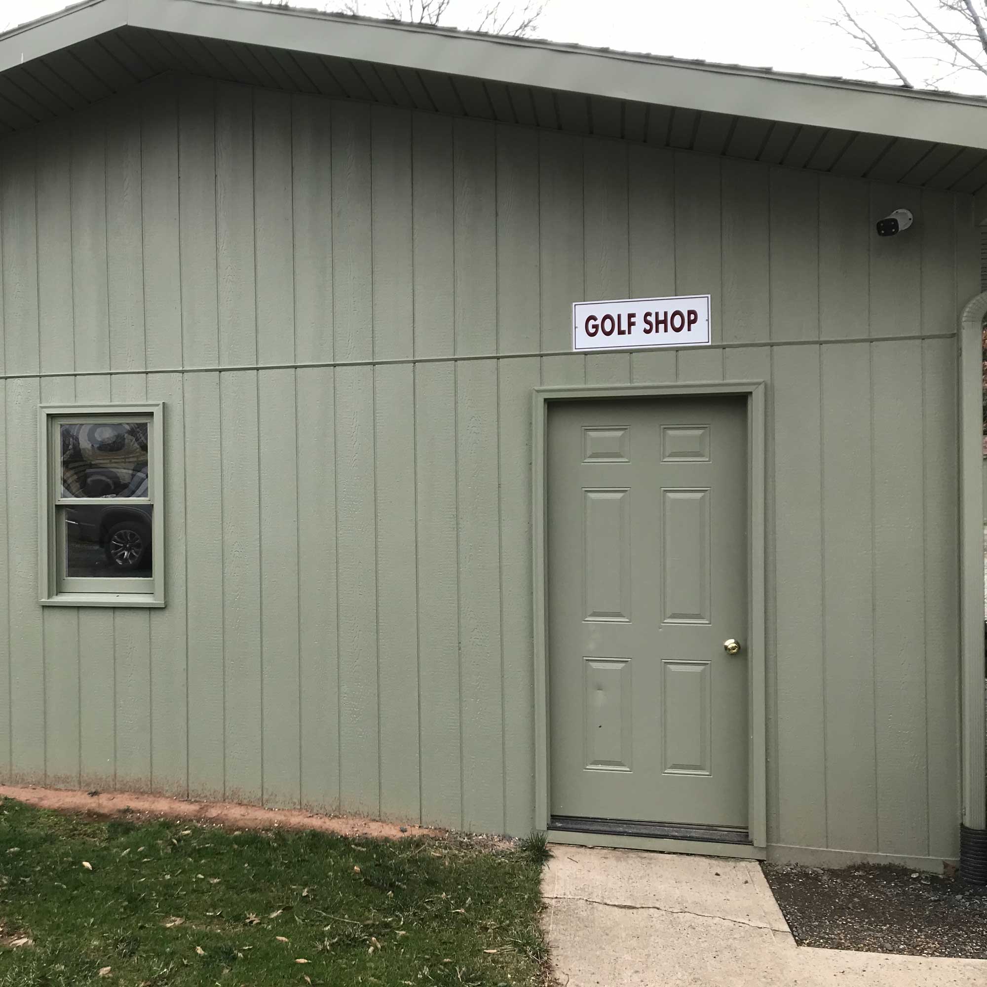 The current “clubhouse” is a small shed that includes a refrigerator with cold drinks and few kitchen cupboards for snacks and dishes. There’s no cart barn. The two carts fit snugly together in another 12-foot x 20-foot shed that also houses several extra sets of clubs.