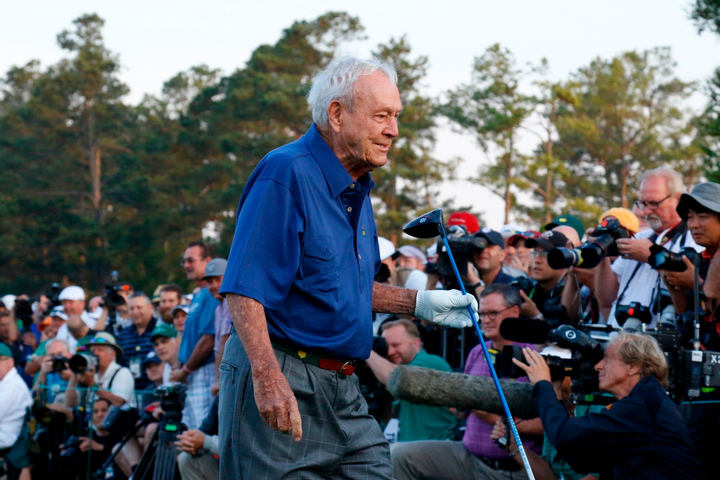 Arnold Palmer gives fans the thumbs-up on the first tee at Augusta Nationa.