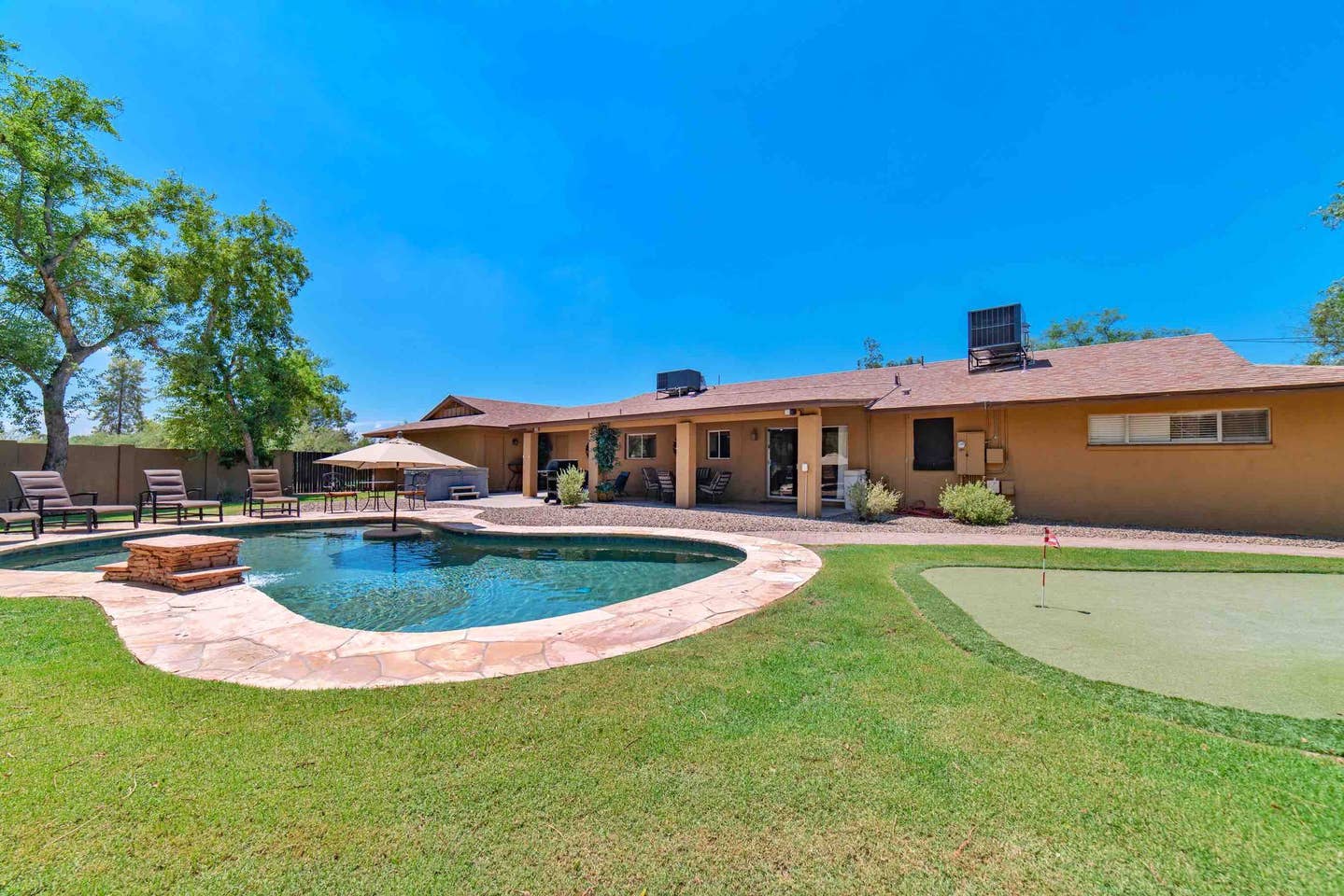 This home sits on an acre of property, offering the ultimate privacy in the heart of downtown Scottsdale. Aside from the pool, hot tub and putting green, this home also has an outdoor pool table and air-hockey table. The modern kitchen is a nice touch for guests who enjoy cooking as well.
