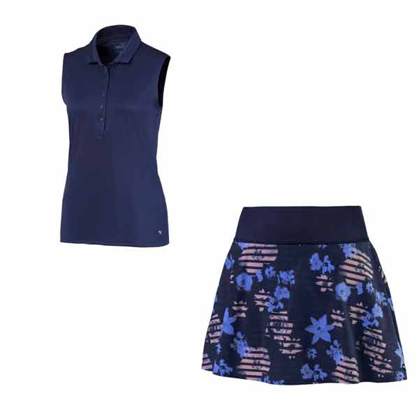 Most of my rounds in Arizona are played in the heat, so sleeveless polos and skorts make up the majority of my golf wardrobe. I love the fit of Puma’s Pwrshape skorts — the thick waistband gives the skort a flattering structure, and for me, at 5’4″, it’s just the right length — not too short, and not too long. I also love the extra-long button placket on the sleeveless polo, which gives it a classy, throwback vibe.