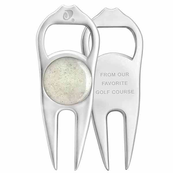 Everyone needs a divot repair tool, so why not go the extra sentimental mile and customize one with a heartfelt message and sand from your favorite course.