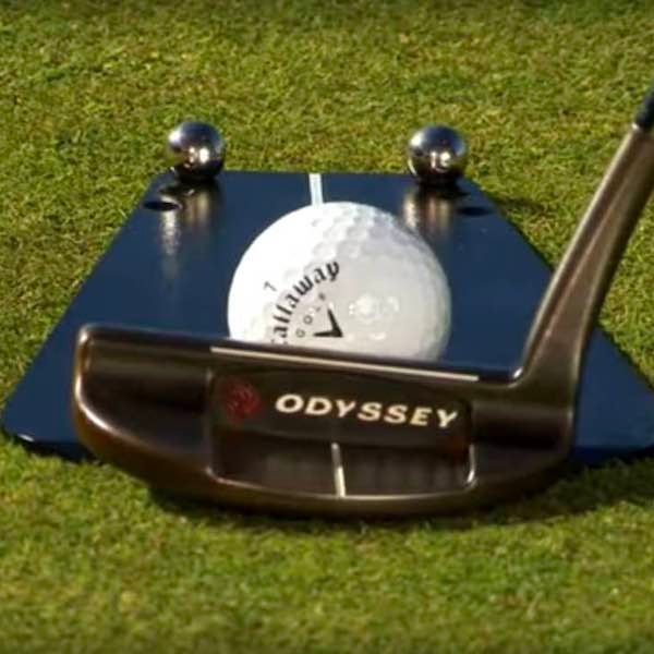 A small, portable training aid that Lefty has been spotted using on the practice putting green for years. The triangular shape forces golfers to square the putterface and keep their eyes over the ball, while the two dots at the other end forces you to start the ball on the correct line.