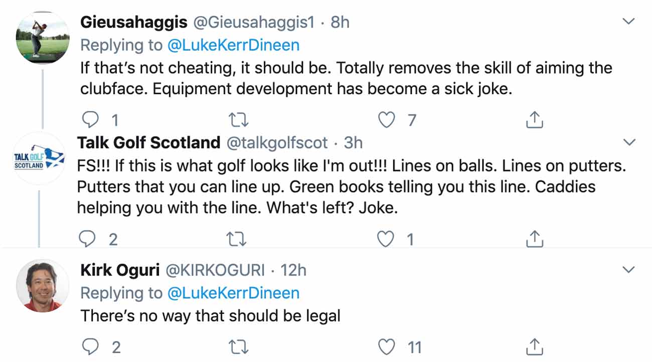 Needless to say, the unconventional equipment had golf Twitter observers fired up about the putter’s legality.
