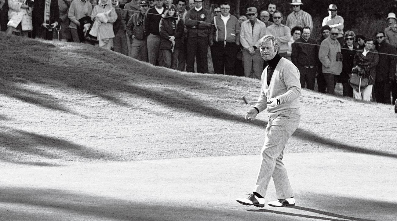 This is on the ninth green on Saturday. No. 9’s a tough hole— 450 yards was big for a par 4 back then. And it was playing tougher than usual that week: the greens in particular were very crusty and difficult to manage. It was the first time the USGA had staged the Open at Pebble, and it caught a lot of grief for setting the course up too hard. I don’t believe it was any harder a setup than usual, but they did dry the course out too much, especially with the way the winds came up. On some greens it was like you couldn’t stop the ball! The wind would actually blow the ball off the putting surface. We had to take all of that into consideration: the lightning speed of the greens, the wind blowing the ball off line, the pull of the ocean. So you can bet I’m concentrating on this putt! I finished the round even par and was even for the tourney going into Sunday, just one ahead of Lee Trevino and a few other guys. I ended up winning my third U.S. Open with a 2-over 290, three strokes ahead of Bruce Crampton, who finished second to me in three majors in ’72-’73.