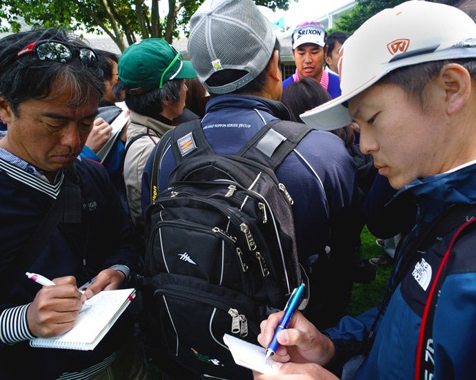 Scoring officials monitor play from a positon next to the 13th fairway during the second round.