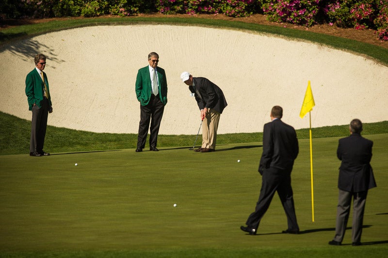 Two-time Masters champion Ben Crenshaw on the first tee prior to the ceremonial tee shots.