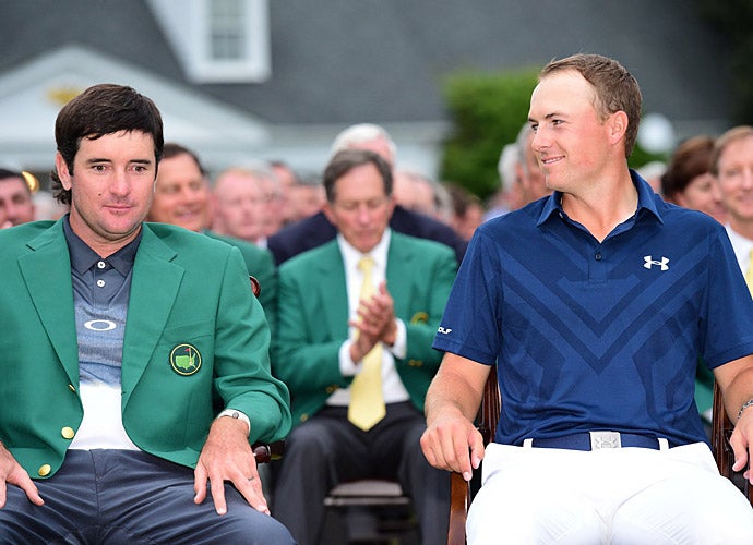 Watson and Spieth during the green jacket ceremony.